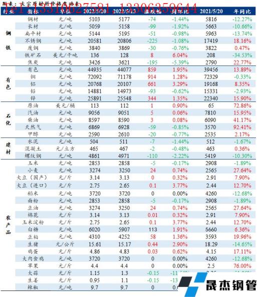 免責聲明:本網(wǎng)站(山東聊城晟杰無縫鋼管廠www.centurybiz.cn)刊載的“周報:大宗工業(yè)原材料、能源及農(nóng)產(chǎn)品價格周報(5.16-5.20)”等均源于網(wǎng)絡,版權歸原作者所有,且僅代表原作者觀點,本文所載信息僅供參考。轉載僅為學習與交流之目的,如無意中侵犯您的合法權益,請及時聯(lián)系刪除。本網(wǎng)站刊登此篇文章并不意味著本站贊同其觀點或證實其內(nèi)容的真實性,我們不對其科學性、嚴肅性等作任何形式的保證。如果侵犯了您的版權,請盡快聯(lián)系我們予以撤銷,謝謝合作!
