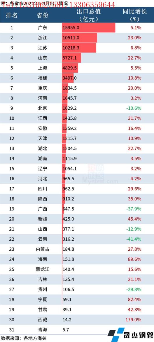 免責聲明:本網站(山東聊城晟杰無縫鋼管廠www.centurybiz.cn)刊載的“前4月全國分省市外貿數據出爐,19地出口增速超10%”等均源于網絡,版權歸原作者所有,且僅代表原作者觀點,本文所載信息僅供參考。轉載僅為學習與交流之目的,如無意中侵犯您的合法權益,請及時聯系刪除。本網站刊登此篇文章并不意味著本站贊同其觀點或證實其內容的真實性,我們不對其科學性、嚴肅性等作任何形式的保證。如果侵犯了您的版權,請盡快聯系我們予以撤銷,謝謝合作!