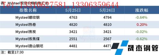 ◎據不完全統計,截至5月25日,國內14家無縫厚壁鋼管廠家發布檢修計劃。其中,徐鋼鋼鐵集團計劃25日對2120m3高爐進行為期7-8天停產檢修計劃,日均影響產量0.8萬噸。詳情>>