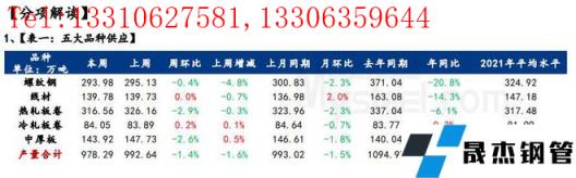 供應方面,本周五大厚壁無縫鋼管品種供應降至978.29萬噸,減量14.35萬噸,降幅1.4%,其中建材環比減量1.1萬噸,降幅0.3%;板材環比減量13.25萬噸,降幅2.38%。