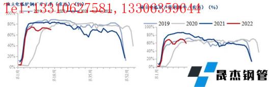 價(jià)格下跌的過(guò)程中,廢鋼成為整個(gè)厚壁無(wú)縫鋼管市場(chǎng)關(guān)注的焦點(diǎn)。電爐鋼生產(chǎn)成本一般高于高爐,厚壁無(wú)縫鋼管價(jià)格下跌首先觸及的將是電爐鋼成本,電爐無(wú)縫厚壁鋼管廠家生產(chǎn)靈活,一旦出現(xiàn)虧損則會(huì)出現(xiàn)明顯的產(chǎn)量下降,供應(yīng)縮減到一定程度市場(chǎng)將會(huì)進(jìn)入新的平衡。數(shù)據(jù)顯示,2021年電爐總產(chǎn)能1.92億,其中短流程的獨(dú)立電爐1.1億。隨著近幾年電爐產(chǎn)能、產(chǎn)量的增加,電爐的產(chǎn)量變化對(duì)厚壁無(wú)縫鋼管市場(chǎng)影響也越來(lái)越舉足輕重。截止到5月20日,獨(dú)立電弧爐開(kāi)工率是69.62%,產(chǎn)能利用率是59.29%,同環(huán)比均有明顯的下降。剔除掉春節(jié)前后的節(jié)假日影響,獨(dú)立電弧爐開(kāi)工率通常保持在50%以上,開(kāi)工率率在2021年4月份達(dá)到最高值84%。由此可見(jiàn)電弧爐的供應(yīng)彈性范圍為0-34%之間。2021年粗鋼產(chǎn)量10.33億噸,按粗鋼1:9的比值計(jì)算,獨(dú)立電弧爐粗鋼供應(yīng)彈性在0至4046萬(wàn)噸之間。如果獨(dú)立電弧爐無(wú)縫厚壁鋼管廠家持續(xù)虧損,大幅減產(chǎn)的話理論上可以重新平衡厚壁無(wú)縫鋼管供需。由此,在厚壁無(wú)縫鋼管下跌過(guò)程中觀察電弧爐無(wú)縫厚壁鋼管廠家成本就有了重要意義。