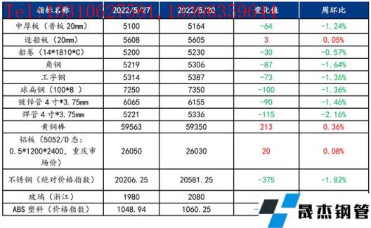 截止2022年5月27日,各原材料當(dāng)日即時價格以及價格周環(huán)比情況如下: