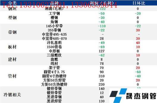 表:5月31日唐山鋼市主要品種利潤一覽(單位:元/噸)