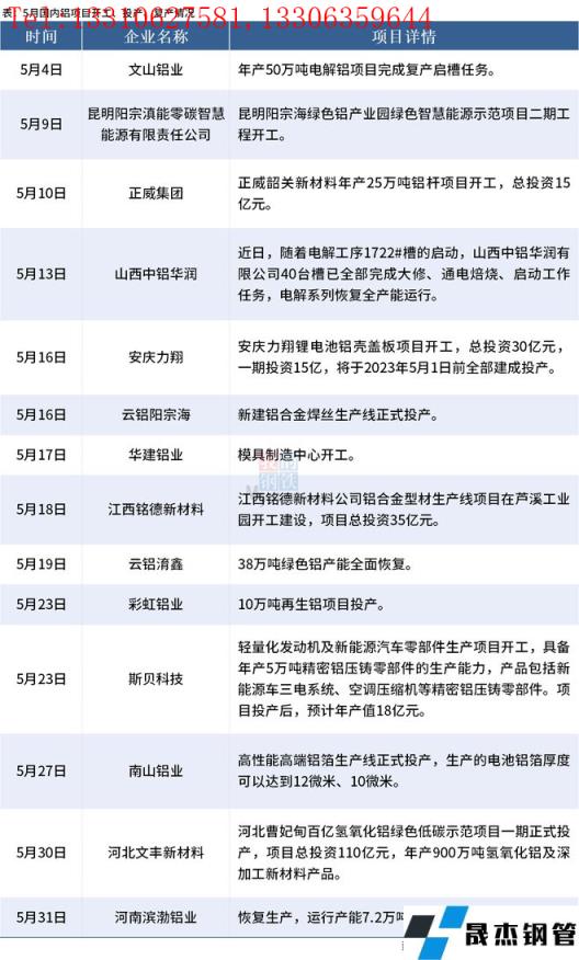 據(jù)不完全整理,2022年5月國內(nèi)共14個鋁項目開工、投產(chǎn)或復(fù)產(chǎn)。