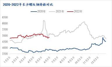 5月湖南建筑厚壁無縫鋼管價格呈現震蕩下跌態勢,月度累計下跌290元/噸,截止5月30日長沙螺紋鋼價格4760-4770元/噸,低于去年同期300元/噸,降幅6%。與此同時,由于目前無縫厚壁鋼管廠家生產和貿易商到貨成本普遍倒掛,下游需求萎靡,市場進入價格上漲無動力,價格下跌有支撐的進退兩難局面。因此,小編預計實際需求沒有提振情況下6月份本地螺紋大概率呈現窄幅震蕩局面。下面小編結合長沙市場基本面情況,簡要分析本地建材價格趨勢。