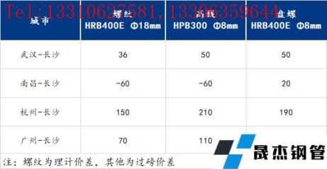表一:相關城市螺紋鋼價差對比