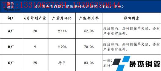 表二:6月省內無縫厚壁鋼管廠家生產情況