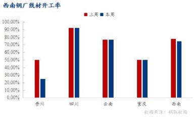 貴州區域:個別無縫厚壁鋼管廠家停產延續,產量小幅下降,線材產能利用率32.12%,環比下降14.99%;開工率25%,環比下降25%;周產量1.5萬噸,環比減少0.7萬噸。