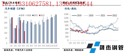 汽車行業作為我國厚壁無縫鋼管消費重要的下游行業,其厚壁無縫鋼管用量約占汽車總重量的70%左右。整車制造過程中,轎車單車厚壁無縫鋼管耗量1噸左右,其中,冷軋是汽車厚壁無縫鋼管消費“主力”,約占汽車厚壁無縫鋼管消費的30%,未來汽車需求增量將直接影響冷軋價格走勢。