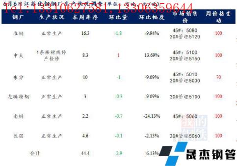江蘇優(yōu)特?zé)o縫厚壁鋼管廠家棒材總庫(kù)存44.4萬噸,較上周減少2.9萬噸,環(huán)比降6.13%,較去年同期增加7.24萬噸,同比增19.48%,目前省中天1條棒材線檢修,其余無縫厚壁鋼管廠家正常生產(chǎn)。