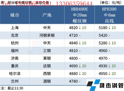 ◎重慶:10日早盤建材市場價格跌20,現達鋼螺4640、盤4910,永航螺4630、盤4890,瀘鋼螺4630、盤4890。(單位:元/噸)