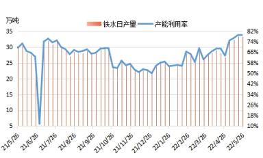 圖2唐山高爐開工率與鐵水產(chǎn)量走勢(shì)圖