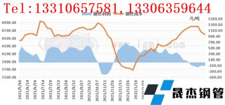 圖5 唐山長(zhǎng)流程無(wú)縫無(wú)縫鋼管廠家鋼坯(累計(jì))成本—利潤(rùn)示意圖