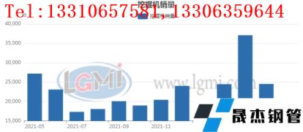 5月份國內挖掘機產量為20937臺,環比4月份減少約6956臺。同比21年同期減少約15165臺。
