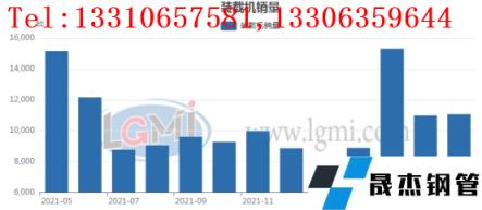5月份國內裝載機銷量為11059臺,環比4月份增加84臺。同比21年同期減少約4086臺。