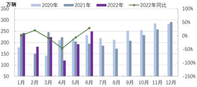 上半年疫情產(chǎn)生階段性沖擊,但乘用車仍保持了增長(zhǎng)態(tài)勢(shì),產(chǎn)銷分別完成1043.4萬輛和1035.5萬輛,同比增長(zhǎng)6.0%和3.4%。尤其6月份乘用車產(chǎn)銷分別完成223.9萬輛和222.2萬輛,同比增長(zhǎng)43.6%和41.2%,產(chǎn)銷形勢(shì)好于預(yù)期。