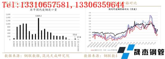 不過,雖然廢鋼進(jìn)口較嚴(yán)格,但在國內(nèi)外廢鋼價(jià)差足夠大的時(shí)候,進(jìn)口廢鋼窗口仍時(shí)有打開,這種時(shí)期通常國內(nèi)廢鋼價(jià)格明顯高于國外廢鋼價(jià)格,也就意味著當(dāng)期國外對(duì)廢鋼的需求較差,今年一季度和三季度國內(nèi)廢鋼進(jìn)口窗口都時(shí)有開放,但受進(jìn)口標(biāo)準(zhǔn)影響,目前國內(nèi)進(jìn)口廢鋼量不大,所以進(jìn)口帶來的廢鋼供應(yīng)增量可謂杯水車薪。